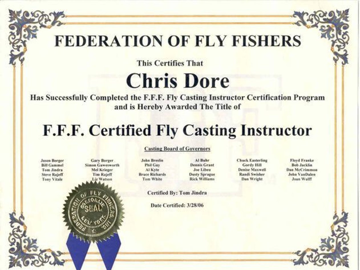 Chris is a Federation of Fly Fishers Certified Casting Instructor, and as such, is internationally qualified to teach, improve, or correct your fly casting technique.